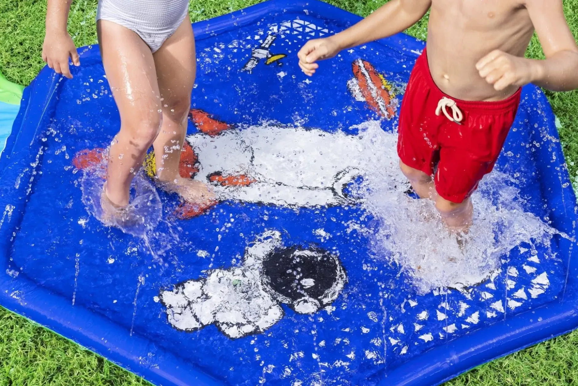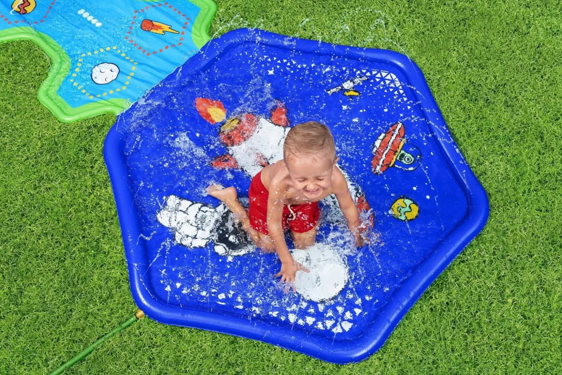 The H2Ogo!® Cosmic Adventure™ Splash Pad Is Ready For Take-Off! Help Your Child Explore Some Out-Of-This-World Fun Right In Your Own Backyard! This 2-In-1 Toy Features Multiple Ways To Play. Let Your Child Count Down To Blast-Off Using The Hopscotch Made For Splashing And Jumping, Or They Can Orbit The Splash Pad At The End Of The Slide Under A Meteor Shower Of Cascading Sprinklers. The Fun Space Theme Encourages Kids To Use Their Imaginations As They Embark On Intergalactic Adventures, While They Play Safely In Your Own Yard. Kids Can Select Their Favorite Way To Play, And They’Ll Be Splashing And Smiling All Day!
