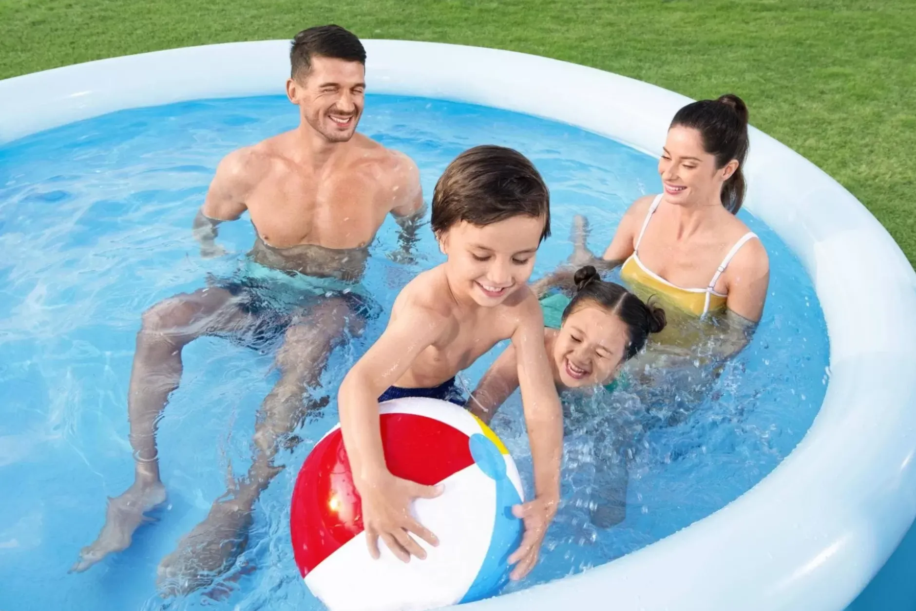 With This Quick And Easy Bestway® Fast Set™ Pool Set, You’Ll Be Ready For A Pool Day In No Time! The Fill & Rise Set-Up Process Is Simple – Just Select A Level Surface, Inflate The Top Ring And The Pool Will Rise As It’S Filled Up With Water. The Sturdy Duraplus™ Liner Is Made Out Of An Ultra-Durable 3-Layer Material That Is Reinforced For Strength And Is 85% More Puncture-Resistant Than Pvc. When The Season’S Over, Storage Is Fast And Simple. The Water Releases Easily Through The Flow Control Drain Valve, And Then The Pool Can Fold Up For Compact Off-Season Storage. This Pool Is The Ideal Choice For Families Looking For A Quick And Easy Pool Option For Their Backyard. Kids Will Enjoy Spending Their Summer Days Splashing And Playing In The Water, And Parents Can Enjoy A Nice And Relaxing Dip As Well. The Season Won’T Be Complete Without The Convenient Fast Set Pool From Bestway!