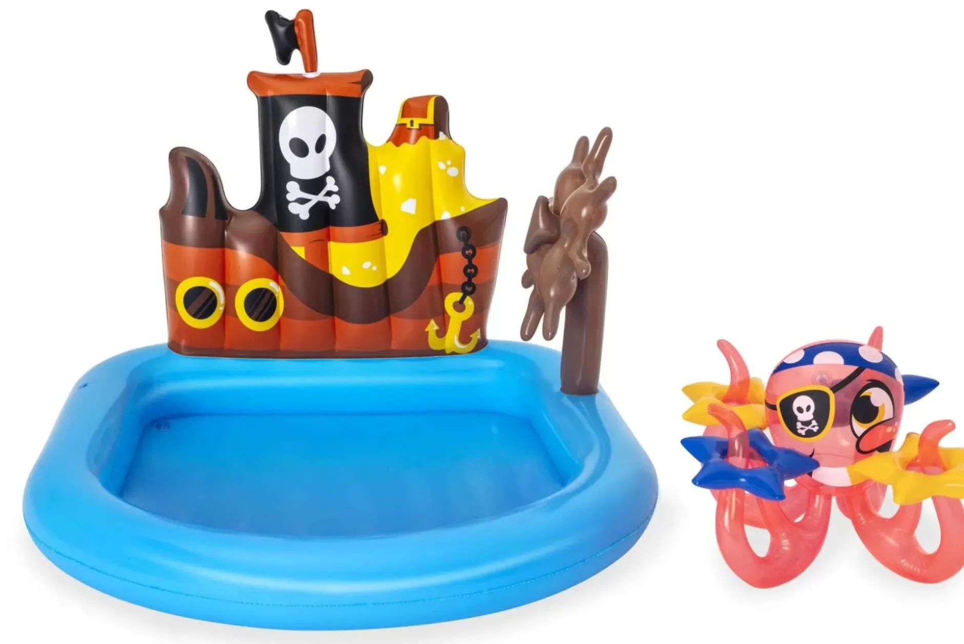 Travel On A Voyage Out To Sea, Search For Hidden Booty And Batten Down The Hatches In This H2Ogo!® Ships Ahoy Play Center. Fill The Pool Up With Water, And Watch As Your Child’S Imagination Runs Wild! The Moveable Ship Wheel Allows Your Little Captain To Steer Their Ship Out Of Trouble Or Incoming Storms – All While Splashing The Day Away In Your Backyard. The Play Center Also Includes An Octopus And 4 Inflatable Rings, Providing A Fun Ring Toss Game For Your Little One To Play, All While Helping Them Develop Motor Skills And Hand-Eye Coordination. This Play Center Is Simple To Set Up And Doesn’T Require The Use Of Any Tools. It Easily Inflates And Deflates, And It Has A Drain Valve To Quickly Get Rid Of The Water When You’Re Ready To Put It Away. Both You And Your Kids Will Feel Like You’Ve Stumbled Upon Hidden Treasure With The H2Ogo! Ships Ahoy Play Center!