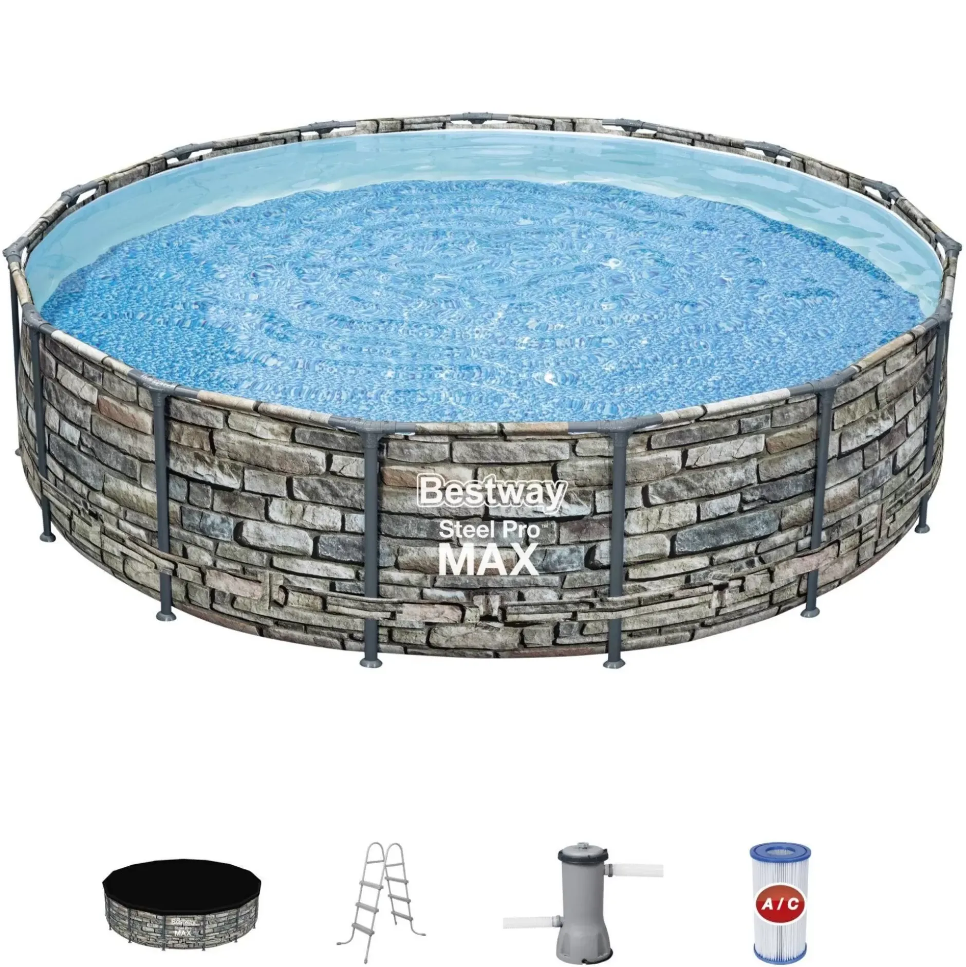 It Doesn’T Get Any Better Than Having Your Very Own Pool In Your Backyard! The Bestway® Steel Pro Max™ Above Ground Pool Offers An Ultra Durable Option At A Great Price. Durable Constructionthe Corrosion-Resistant Steel Frame Is Equipped With Our Framelink System™ For A Sturdy And Secure Frame Connection. The Protective Connectors Protect From Damage And Rust-Causing Metal-On-Metal Contact. They Are Also Compatible With Accessory Attachment, Such As Cup Holders. The Sturdy Duraplus™ Liner Is Made Out Of An Ultra-Durable 3-Layer Material That Is Reinforced For Strength And Puncture-Resistance. Duraplus Is 15% More Tear Resistant, 33% More Stretch Resistant And 83% More Puncture Resistant Than Standard Pvc, Ensuring Your Pool Will Last Summer After Summer. Additional Featuresthis Above Ground Pool Set Also Comes Stocked With A Filter Pump, A Ladder And A Pool Cover. Plus, This Pool Is Very Simple To Set Up And To Take Down For Off-Season Storage. No Tools Are Required, And A Hose Connects To The Built-In Flow Control Valve To Quickly And Easily Drain Away Pool Water. Spend Your Summer On The Water In This Bestway Steel Pro Max Pool!