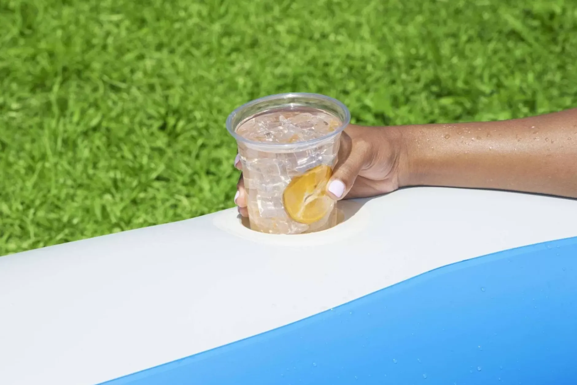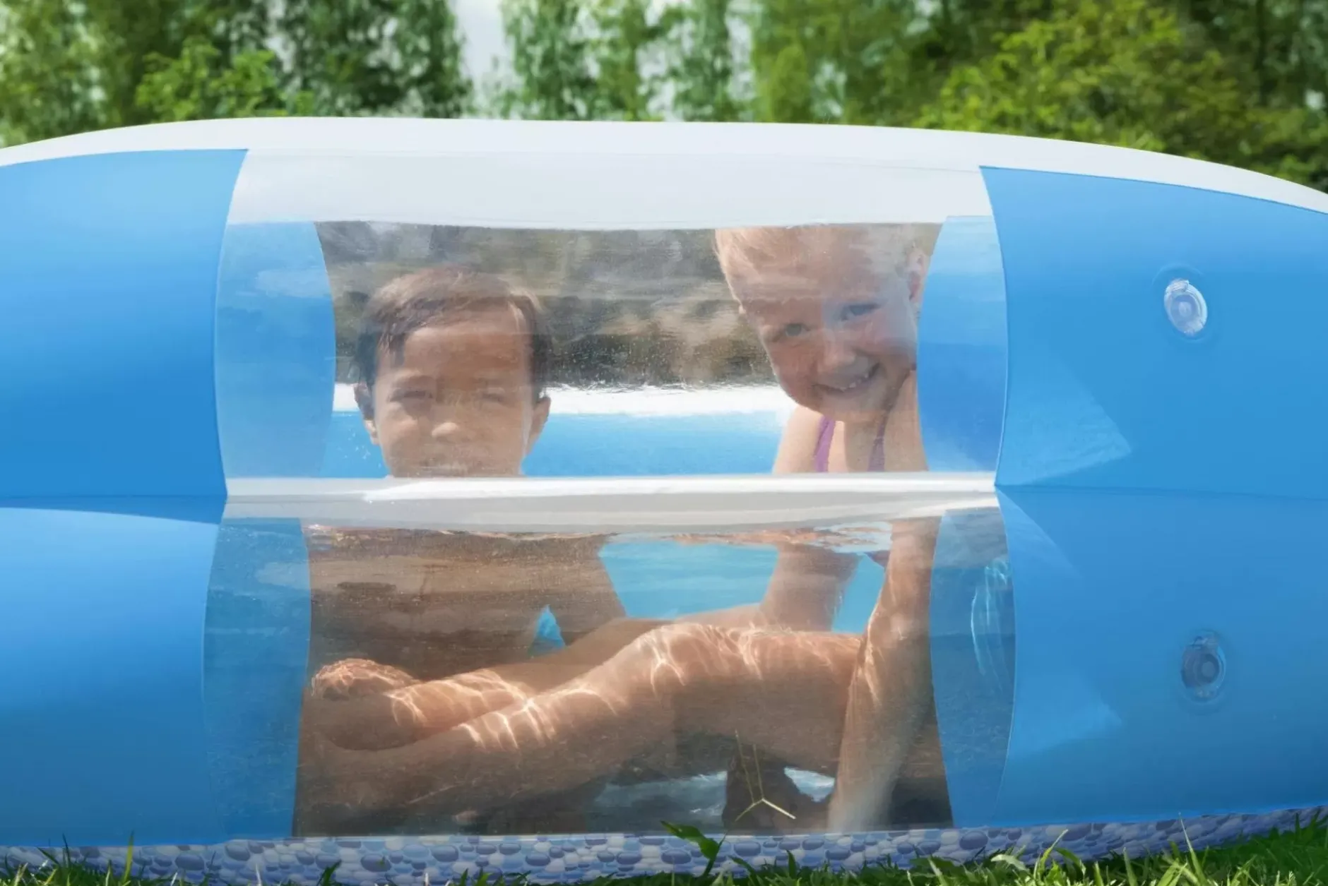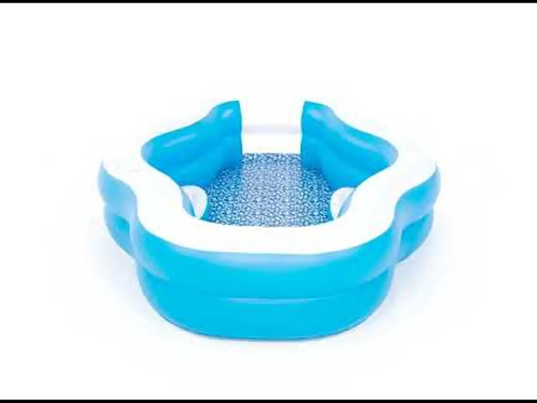 The H2Ogo!® Splashview Family Pool Not Only Offers A Pleasant Aesthetic To Your Back Yard With Its Bright Blue And White Colors, Geometric Floor Print And Unique Shape, But It Also Offers Fun And Comfort For The Whole Family! This Inflatable Above-Ground Pool Comes With An Exciting See-Through Window, Turning Swimming Into A Wonderful Picture Opportunity For The Whole Family. View The World Like A Fish Underwater As You Peek Through The Waves To See Your Backyard Or Stay Dry And Peek In At All The Exciting Underwater Antics. The View Will Nurture Imaginations And Create Memorable Moments. Kids And Adults Of All Ages Can Splash, Play And Lounge In The Sun All Day Long. Parents Can Relax With The Two Comfortable Bench Seats, These Seats Are Accompanied By Two Cup Holders, Making It Easy To Keep Drinks And Snacks Conveniently Close While You Play In The Water. With Quick Release Valves This Pool Makes Inflation, Deflation And Storage A Breeze. Relax With Friends And Play With Your Kids – The Opportunities For Surprises And Fun Are Endless In The Splashview Family Pool.