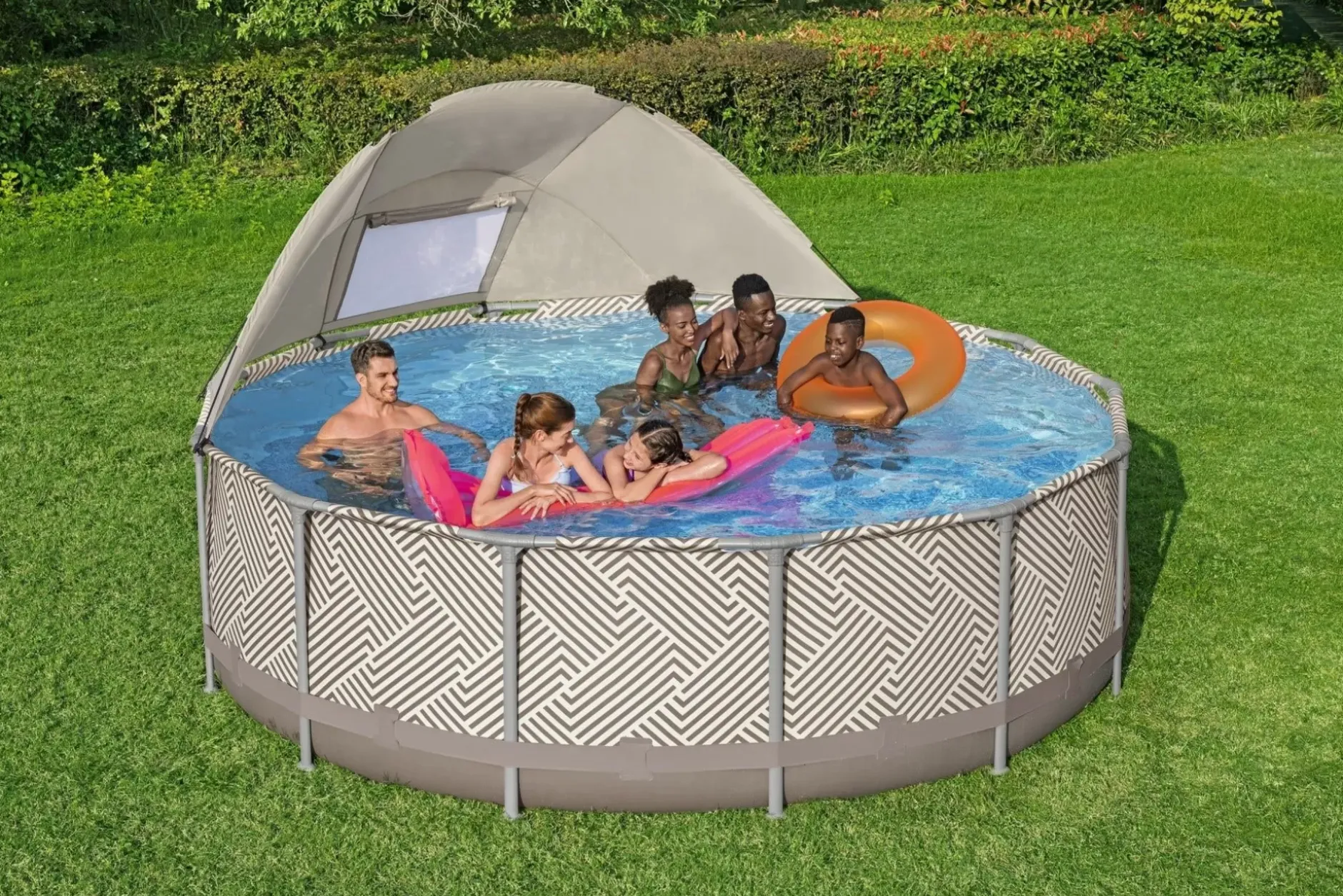 It Doesn’T Get Any Better Than Having Your Very Own Pool In Your Backyard! You Can Splash And Keep Cool In The Bestway® Steel Pro Max™ Above Ground Pool, Which Features A Canopy For Some Extra Shade. Durable Construction:The Durable Pool Frame Is Constructed With Superior Corrosion-Resistant Steel To Ensure Stability And Longevity. The Clickconnect System™ Of Frame Connectors Makes Setting The Pool Up A Breeze, With No Additional Tools Or Accessories Needed. Quickly Click Each Support Piece Into Place For A Safe And Secure Connection. The Frame Connectors Also Prevent Metal-On-Metal Contact To Ensure Resistance From Corrosion And Rust. The Sturdy Duraplus™ Liner Is Made Out Of An Ultra-Durable 3-Layer Material That Is Reinforced For Strength And Puncture-Resistance. Duraplus Is 15% More Tear Resistant, 33% More Stretch Resistant And 83% More Puncture Resistant Than Standard Pvc, Ensuring Your Pool Will Last Summer After Summer. Additional Features:This Above Ground Pool Set Also Comes Stocked With A Filter Pump, A Ladder, A Pool Cover And A Pool Canopy. Plus, This Pool Is Very Simple To Set Up And To Take Down For Off-Season Storage. No Tools Are Required, And A Hose Connects To The Built-In Flow Control Valve To Quickly And Easily Drain Away Pool Water. Spend Your Summer In The Water In This Bestway Steel Pro Max Pool!
