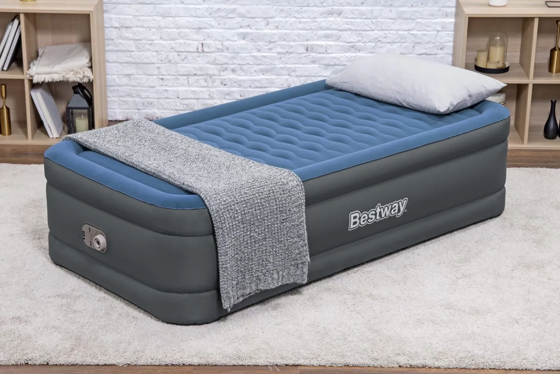 Both Durable And Comfortable, The Bestway® Tough Guard™ Air Mattress Has A Stretch-Resistant Surface That Is Also Smooth And Soft To The Touch! This Twin Bed Is Heavy-Duty While Still Being Lightweight, Making It The Premium Choice. Plus, With The Ultra-Fresh® Antimicrobial Treatment, Your Bed Will Be Protected From The Growth Of Odor-Causing Bacteria, Mold And Mildew On The Sleep Surface.Durable Construction:Constructed For Lasting Durability, This Air Mattress Is Made Out Of Tough Guard Material. This Fusion Of Pvc And Polyester Is Stronger Than Traditional Pvc, While Still Being 10% Lighter Weight. This Durable Material Is Also 75% More Puncture Resistant, 92% More Stretch Resistant, And 150X More Scratch Resistant. Feel Comfortable All Night Thanks To The Specially Designed, Woven Material That Ensures The Bed Never Feels Too Hot Or Too Cold. Drift Off In Comfort On Luxurious Wave Beams, Which Help To Maintain Spinal Alignment And Provide Contoured Pressure Relief As You Sleep. The Surrounding Frame Design Also Prevents Roll-Off Throughout The Night.Luxurious Surface:The Premium Soft Top™ Sleeping Surface Is Made Up Of 2 Layers Of Velvet-Like Material. These Layers Trap Air Between Them To Provide Cushion, Comfort And Support For A Restful Night’S Sleep.Simple Setup:The Built-In Ac Air Pump Inflates The Mattress In 3-4 Minutes, So It Is Ready For Bed When You Are. In The Morning, The Quick Deflate Valve Allows For Easy Takedown. Simply Place Your Flattened And Folded Bed In The Included Carry Bag For Easy Transport And Storage.