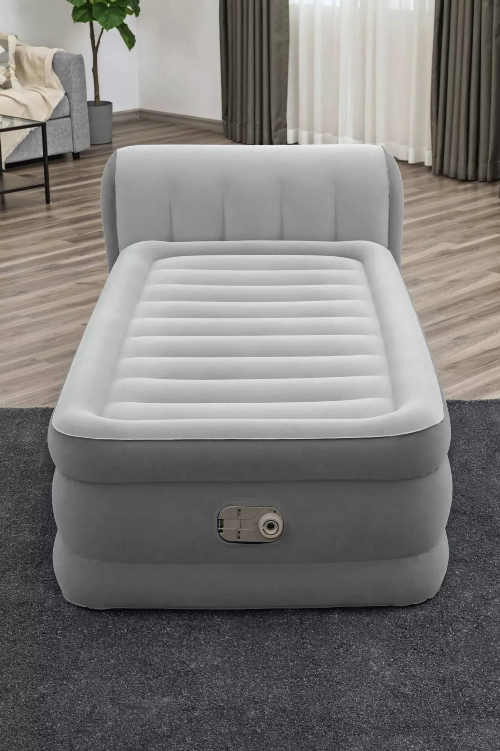 Wake Up Renewed And Refreshed On The Bestway® Tritech™ Air Mattress With Headboard! This Twin-Sized Bed Promises Strength, Durability And Comfort All Night Long. The Headboard Is Perfect For Leaning Back And Relaxing. Its Compact Size And Built-In Pump Make It Quick And Convenient For Use Whenever You Need It. Plus, With The Ultra-Fresh™ Antimicrobial Treatment, Your Bed Will Be Protected From The Growth Of Odor-Causing Bacteria, Mold And Mildew On The Sleep Surface.Durable Construction:With A Comfortable Flocked Sleeping Surface And Sturdy Construction, A Great Night’S Sleep Is Right Around The Corner. The Internal Structure Of This Bed Is Made With Tritech™ Material Offering Durability And Strength, While Also Allowing The Mattress To Keep The Same Shape No Matter How Many Times It’S Inflated And Deflated. This Premium Grade Material Increases Internal Stretch-Resistance And Provides Contoured Support For All Night Comfort. Engineered To Provide A Flat, Comfortable Sleeping Surface And An Elegant Look, The Unique Wave Beam Design Ensures You Get A Great Night’S Sleep And Ultimate Comfort.Simple Setup:The Built-In Ac Air Pump Inflates The Mattress In 3-4 Minutes, So It Is Ready For Bed When You Are. In The Morning, The Quick Release Screw Valve Allows For Easy Deflation. Simply Place Your Flattened Bed In The Included Carry Bag For Easy Transport And Storage.