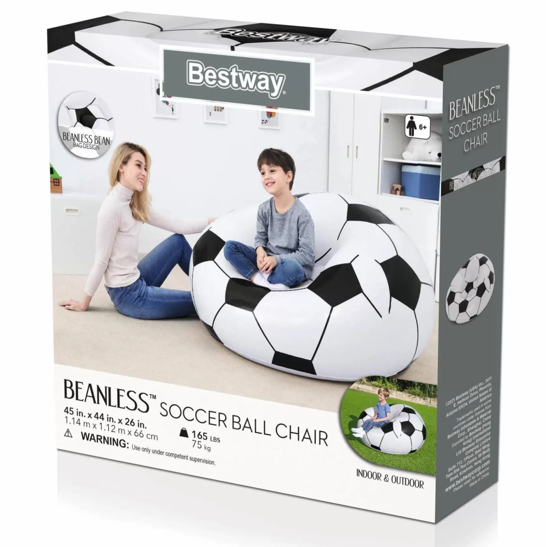 The Beanless™ Soccer Ball Chair By Bestway® Is Perfect For Boys And Girls Who Love Soccer Or Sports In General. Have A Sports Themed Party, Play Video Games With Your Friends Or Relax In A Bedroom On This Comfortable Chair. This Innovative, Fun Design Can Go With You From The Backyard, To The Basement Or The Kids Room. Designed After The Classic Bean Bag Chair, This Soccer Ball Offers An Easy, Portable, Inflatable Solution. Great For Extra Seating And Extra Fun – This Sporty Design’S Construction Stands Up To The Wear And Tear Of Youngsters. Easy Inflation Makes It Possible To Set Up The Seat Quickly, And Easy Deflation Makes It Simple To Store. It’S The Perfect Addition For A Child’S Room, Living Room Or Game Room, And It’S Easy To Take With You Wherever You May Need To Go. The Bestway Beanless Soccer Ball Chair Is Great For Inspiring Your Child’S Active Imagination!
